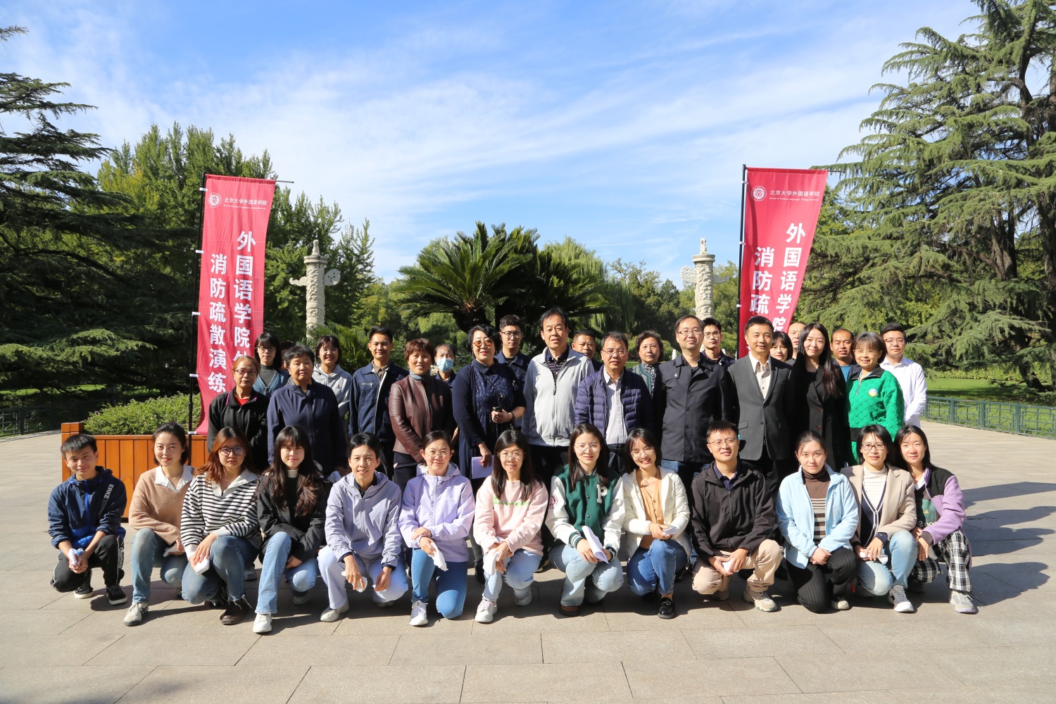 秋风飒爽,秋光正盛,外院参与本次疏散演练的教职工在明媚的秋光中合影留念。本次消防疏散演练活动强化了教职工的消防安全意识,增强了安全逃生能力,同时物业人员处理火灾事故的能力以及消防器材的使用能力也得到了加强。今后,开云(中国)仍将定期举办各类消防培训活动,保障师生生命安全,为营造安全的校园环境做出自己的贡献。