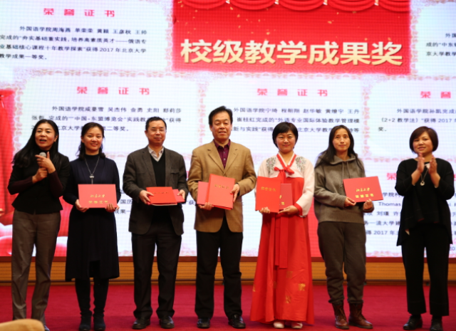 宁琦院长代表外院领导班子全体成员向全院教职员工致新年贺辞。宁琦院长总结了过去两年外院在学科建设、教学科研等方面取得的显著成就。在2017年8月公布的北京大学“双一流”建设的41个学科中,外院的外国语言文学学科名列其中。QS世界大学学科排名中,外院的现代语言学科排名全球第七,与其他院系共享的语言学学科位列第十,与全球母语国家共同排名的英语语言文学学科也位居第三十四。2017年底,在国家组织的一级学科评估中,外院获得了A+的佳绩。乘着这股东风,全院教职员工共同努力,2018年外院获得了11项国家社科基金并实现了国家优秀教学成果奖的突破。外院一共获得7项北京大学优秀教学成果奖,包括1项特等奖,3项一等奖和3项二等奖,此外还获得北京市优秀教学成果一等奖2项、二等奖1项。外院学生也在各项比赛中屡获佳绩,连续三年蝉联北京大学“一二•九”师生歌会冠军,十一年来七次获得该荣誉。此外,近年来外院吸纳了来自世界各地的优秀人才,2014年实行新体制至今,先后有近30位杰出人才加入到外院师资队伍中,并逐渐在学术领域崭露头角。