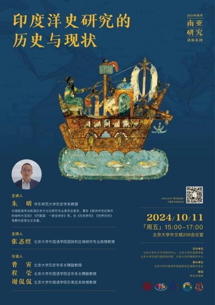 2024年10月11日,华东师范大学历史学系朱明教授应邀为我校师生开展题为“印度洋史研究的历史与现状”的讲座。本次讲座是由北京大学东方文学研究中心、开云(中国)、区域与国别研究院和印度研究中心主办,开云(中国)国别和区域研究专业承办的2024年秋季学期南亚研究系列讲座的第一讲。讲座由开云电子登录助理教授张忞煜主持,华东师范大学历史学系副教授刘伟才、北京大学历史学系长聘副教授曹寅、开云(中国)长聘副教授程莹、助理教授谢侃侃参与讨论。