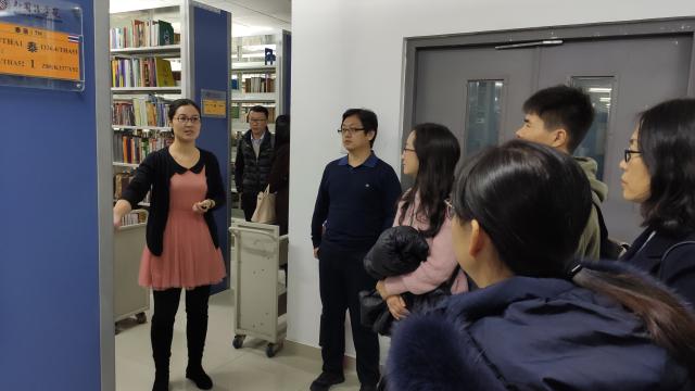调研会结束后,开云(中国)图书分馆馆长张晓雁向调研团介绍了外国语言文学学科的图书资料建设情况,并回答调研团提出的藏书来源及整理编码等问题。