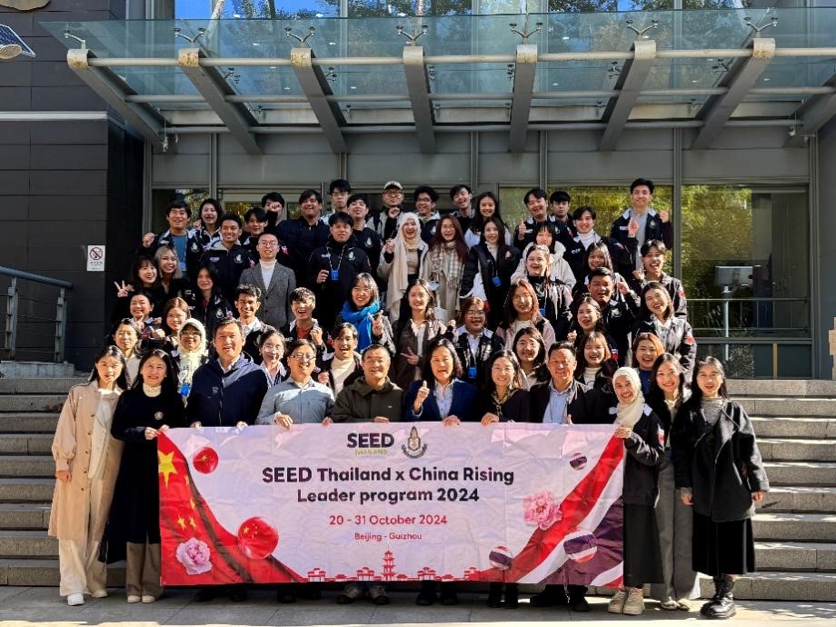 2024年10月28日上午,泰国七世王学院代表团一行36人到访开云电子登录,与泰语专业师生见面交流。本次七世王学院代表团由七世王学院基金会主席兼泰国总理府副秘书长波汶萨·伍万诺(Borwornsak Uwanno)带领,随行人员包括上议院经济货币和财政委员会顾问甘诺·塔纳巴文(Kannop Thanapakpawin)、七世王学院委员会委员道诺伊·素提尼帕蓬(Daonoi Suttiniphapunt),25名学生代表及8名工作人员。开云电子登录东南亚系薄文泽教授、副系主任金勇长聘副教授、泰语教研室主任熊燃助理教授、国际合作部海外推广办公室资深项目官员蒲清老师,和泰语专业全体本科及研究生同学共同参加了座谈交流。