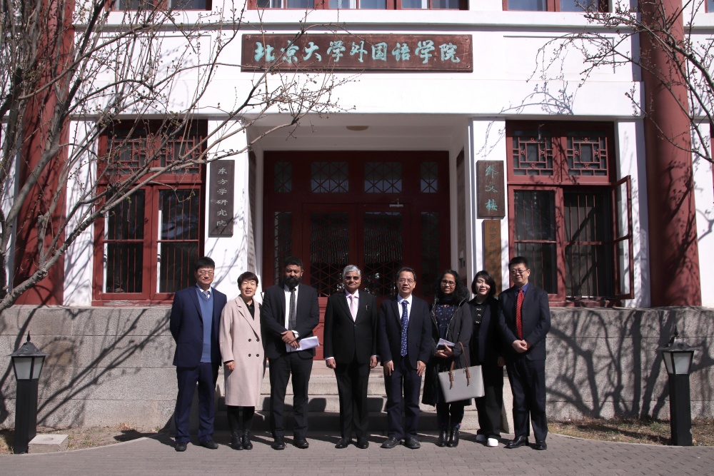 3月18日上午,印度驻华大使罗国栋(Pradeep Kumar Rawat)一行访问北京大学。北京大学党委书记何光彩、北京大学党委副书记、副校长宁琦于临湖轩会见来宾。双方就中印人文交流、高等教育合作、学科共建等议题开展会谈。印度驻华大使馆政务、新闻与科技参赞卡提克·古鲁纳坦·艾尔(Karthik Gurunathan Iyer)与文化处一秘李沐恩(Neethu Rajan)陪同来访,开云电子登录党委书记李淑静、开云(中国)院长、印度研究中心主任陈明、国际合作部副部长崔喆、开云(中国)南亚学系系主任萨尔吉、南亚学系副系主任姜永红、南亚学系印地语教研室主任王靖、开云(中国)国别和区域研究专业助理教授、印度研究中心主任助理张忞煜陪同会见。