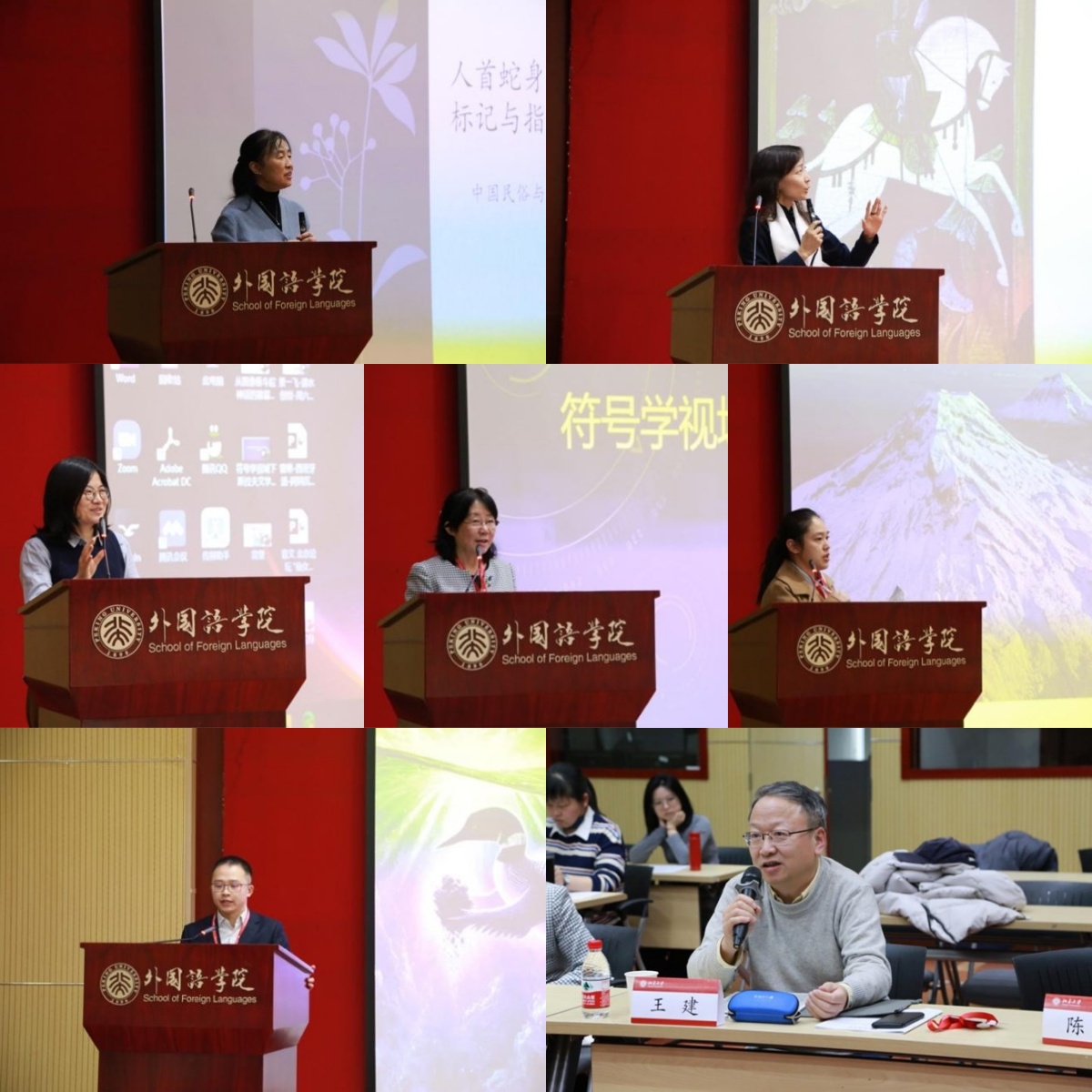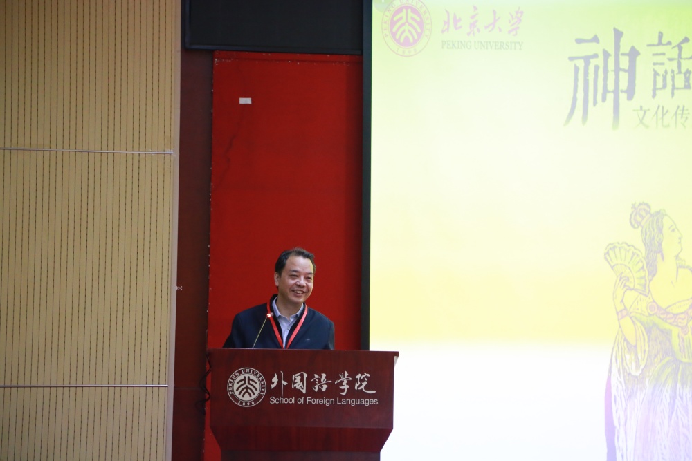 会议的学术发言环节分为三个场次,分别由北大外院法语系长聘副教授章文、英语系副教授修立梅和英语系长聘副教授纳海主持。在15日上午的场次中,中文系教授王娟、俄语系长聘副教授王帅与英语系长聘副教授李宛霖围绕“神话&神圣:历史中的探源”这一主题,探讨了人首蛇身母题的世界普遍性、基督教语境下圣乔治斗蛇神话的重构和《白蛇传》的文学与影视改编。主题为“神话&历史:史学叙事的讲述方式”的发言中, 俄罗斯文化研究所研究员、广东外语外贸大学外国文学文化研究所教授张冰、北大外院西班牙语系博士生曾琳和英语系博士生景一飞分别讨论了斯拉夫文学史前神话符号学、墨西哥火山传说和北美潜水创世神话。欧美文学研究中心主任、德语系王建教授、王娟老师和张冰老师对该环节的发言分别进行点评,强调要关注神话传承的复杂动态过程,兼顾多元文化视角与本土文化的独特逻辑。