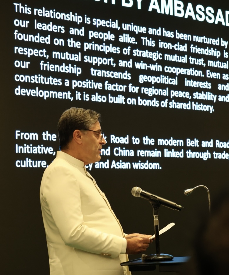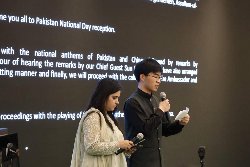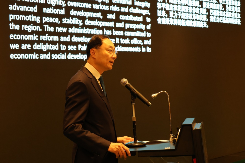 招待会上巴基斯坦驻华大使卡里尔·哈什米和中国外交部副部长孙卫东分别致辞。哈什米大使回顾了巴基斯坦的历史与发展,强调中巴友谊深厚,期待双方在经贸、科技、教育等领域进一步合作。哈什米强调,巴方愿抓住中国高质量发展带来的新机遇,同中方加强战略沟通,深化“一带一路”共建及各领域务实合作,推动巴中关系不断迈上新台阶。