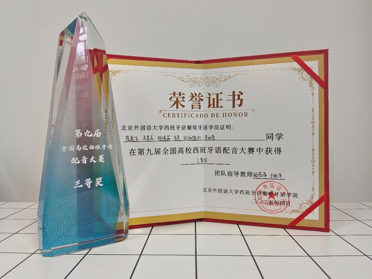吴若辰:此次参加全国高校西班牙语配音比赛决赛,我们与来自全国各地高校的西语专业优秀同学们同台竞技。凭借扎实的语言水平和别样的创意呈现,我们最终荣获三等奖。这一来之不易的成绩,凝聚着团队成员们的辛勤付出与默契配合。
