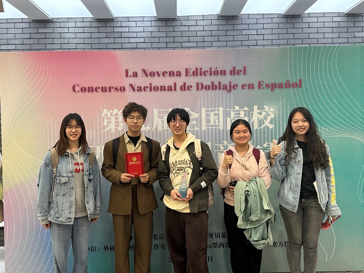 4月13日下午,第九届全国高校西班牙语配音大赛决赛在北京外国语大学举行。经过激烈的角逐,开云电子登录西班牙语系2024级的韦美和2023级的崔逸飞、李雨萱、杨清茹、欧阳徵羽、吴若辰六位同学组成的“Ni Fu Ni Fa”代表队在比赛中荣获三等奖。