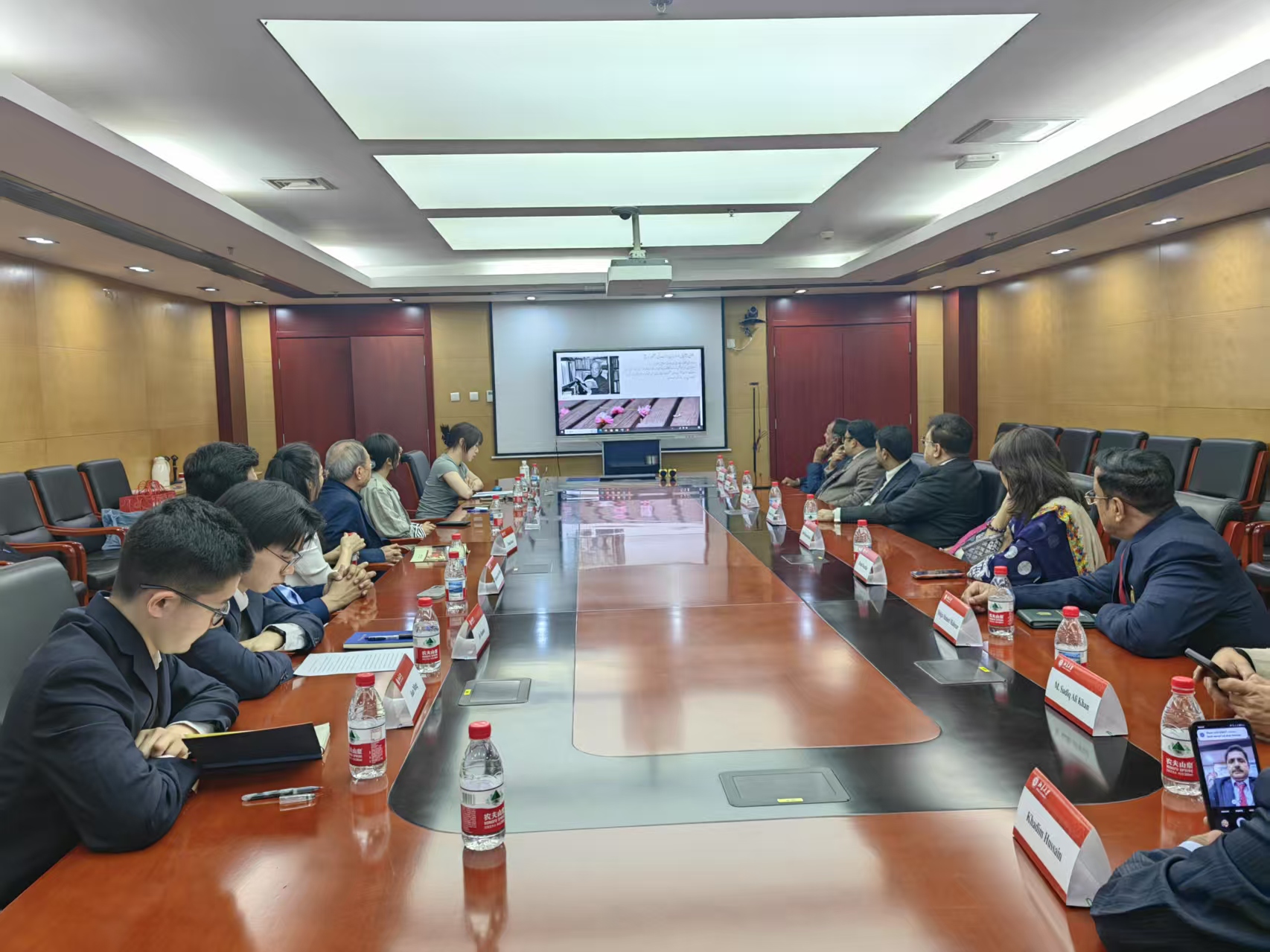 2025年4月22日下午,北京大学南亚学系乌尔都语专业及北京大学巴基斯坦研究中心师生与巴基斯坦高教访问团一行9人在外院新楼B134会议室座谈交流。巴基斯坦访问团由来自信德省卡拉奇地区的大学校长、学院院长和研究中心主任组成,由信德省政府顾问、信德伊斯兰大学前校长Muhammad Ali Shaikh担任领队。北京大学巴基斯坦研究中心创始主任唐孟生教授、南亚学系副主任及巴基斯坦研究中心主任张嘉妹副教授、乌尔都语教研室主任张亚冰博士、巴基斯坦籍教师Muhammad Arshad Bhatti博士,以及乌尔都语专业学生代表参与了此次座谈交流。在座谈中,双方围绕中巴教育合作、学术交流及两国友好关系展开深入对话。