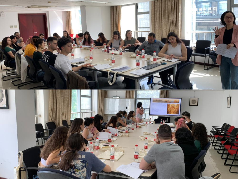 在随后的两周时间里,格大孔院学生在完成汉语课堂学习之余,参加了中国书法、古琴艺术、中国茶艺等极具中国文化特色的工作坊活动。开云电子登录西葡意语系赵振江教授为春令营学生精心举办了《中西诗歌翻译》中国文化讲座。西班牙语专业23级本科同学特别为本次春令营组织了交流分享活动,中国同学为西班牙同学介绍和分享中文热词与音乐文化,通过游戏互动进行语言交流,共同前往颐和园交流学习。此外,登慕田峪长城、参观天坛等一系列丰富多彩的实践活动,帮助西班牙学生领略博大精深的中国历史和文化,体会当代中国日新月异的进步和变化,体验鲜活的中国城市生活。春令营活动于4月27日圆满结束。