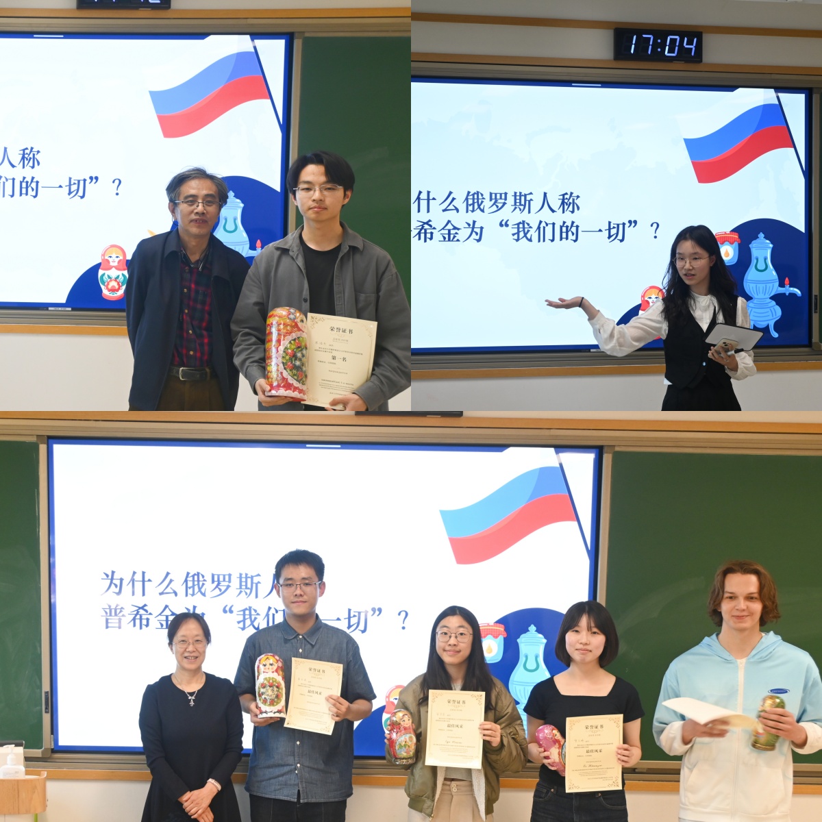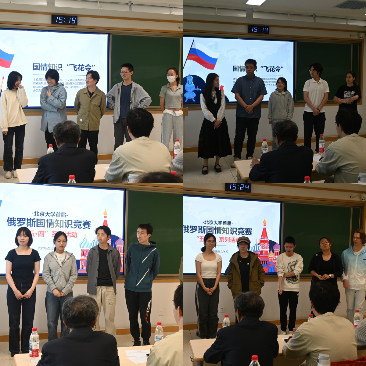2025年4月24日,开云电子登录俄罗斯语言文学系(以下简称“俄语系”)于北京大学第一教学楼302教室举行“五·四系列活动——首届俄罗斯国情知识竞赛”(以下简称“竞赛”)。俄语系教师出席并担任竞赛评委。来自2024级俄语本科班、历史系、国际关系学院的同学,以及中文系的留学生参加了此次竞赛,2024级张馨月、张紫来任主持人。竞赛在一片热烈的掌声中正式拉开序幕。