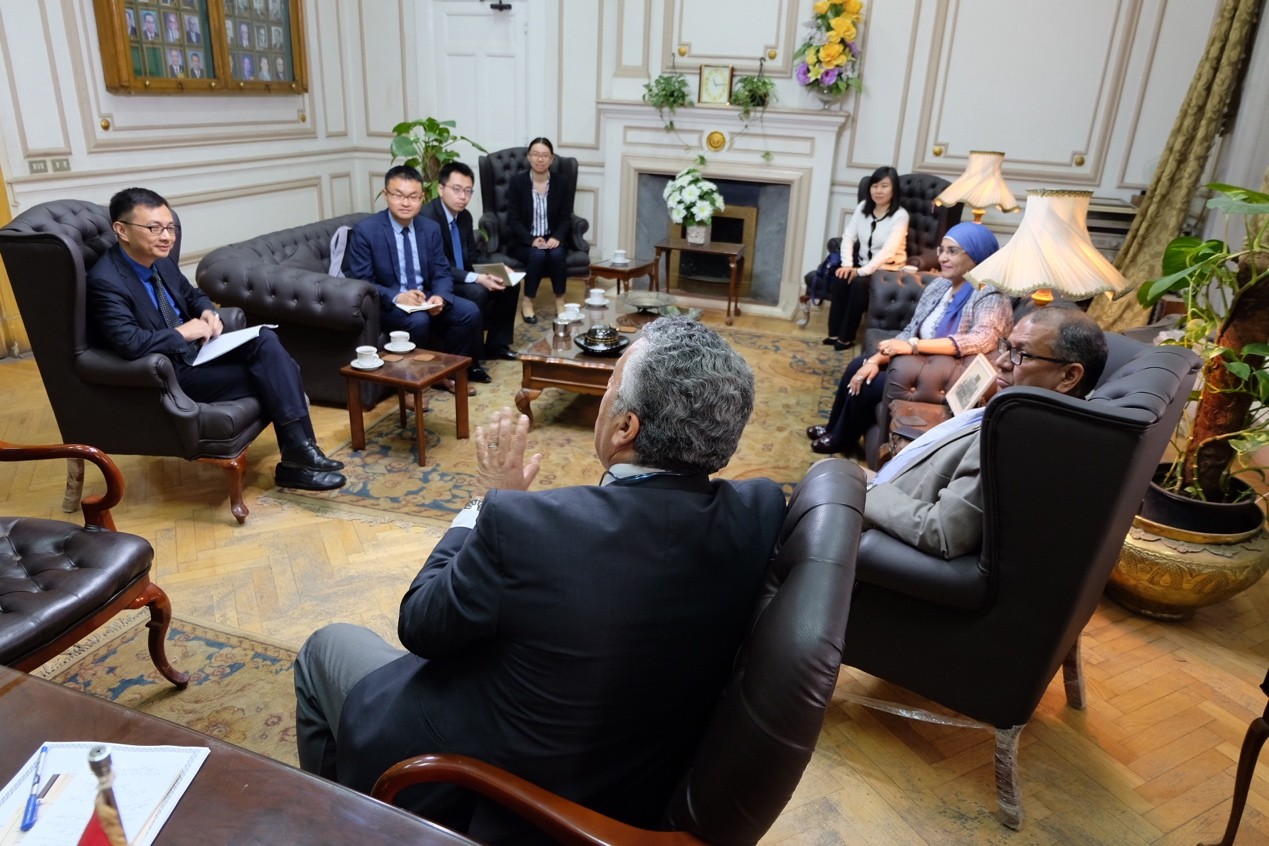 团队第二站参访了开罗大学人文学院。学院院长艾哈迈德•沙尔比尼(Ahmed El-Sherbini)和中文系系主任、孔子学院阿方院长李哈布(Rehab)接见了团队师生。双方表示愿意在既有的合作基础上,发挥各自的语言及学科优势,进一步扩展开罗大学人文学院和开云电子登录间的学术合作与人员交流。