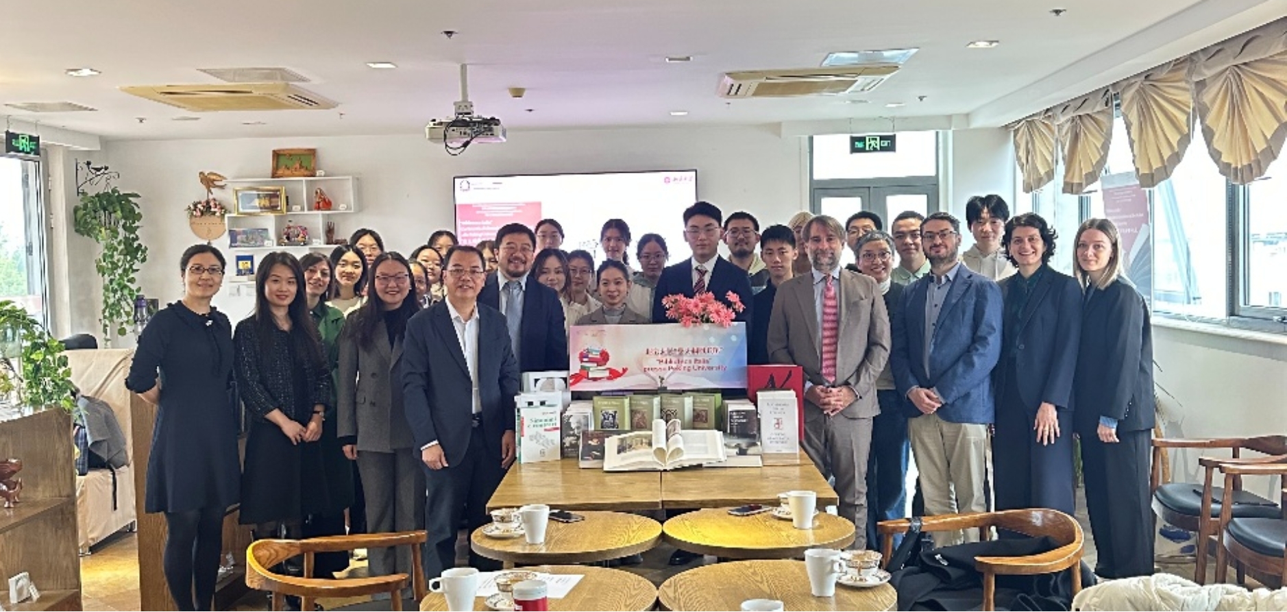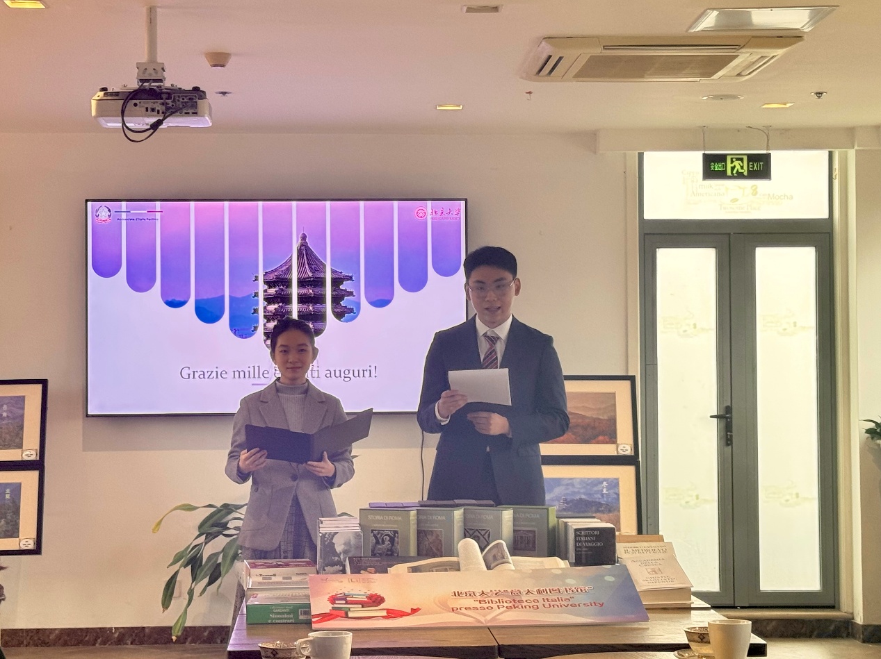 意大利驻华大使馆一等秘书Elisa Palana、文化专员Daniele Galleni,开云电子登录欧洲语言文学系主任樊星、图书馆馆长张晓雁老师及意大利语专业全体师生共同参加了本次活动。