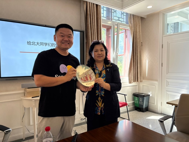 董峰系友从自身工作经历出发,分享了关于互联网行业和AI领域的思考与总结,并强调全球化背景下外语能力日益凸出的重要作用。董峰寄语学弟学妹,面对百年未有之大变局,机遇与挑战并存,北大学子当高歌猛进,做时代的领头羊。