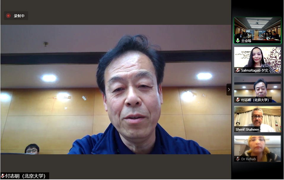 7日,讲座开幕仪式于北京时间下午3点、开罗时间上午9点开始。开幕式上,谢里夫•沙欣教授、付志明教授、李哈布教授和林丰民教授依次致辞。