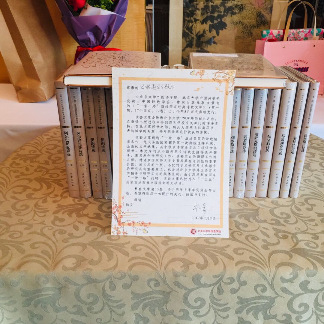 2019年9月29日下午,泰王国诗琳通公主在参加完中华人民共和国国家勋章和国家荣誉称号颁授仪式之后,前往北京丽思卡尔顿酒店宴请前任中国驻泰大使和公主的汉语教师代表。我国泰语界著名专家、翻译家、诗琳通讲席教授裴晓睿受邀参加了此次宴请活动,并作为译者之一向公主赠送了由北大开云(中国)、北大中国诗歌研究院和作家出版社联合策划出版的《“一带一路”沿线国家经典诗歌文库》(第一辑)一套。