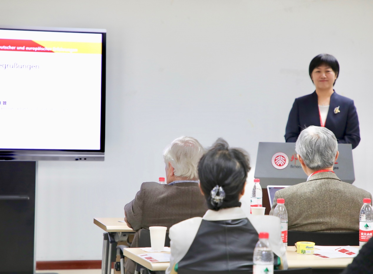 13日,德国法兰克福大学知名经济学家、北京大学人文社会科学研究院客座教授贝尔特拉姆·舍弗尔德教授关于中国经济思想的报告拉开了第二天会议的序幕。各国学者从历史出发,对德国统一与欧洲共同发展过程中所遭遇的社会问题进行分析,以德国与欧洲的经验为例,讨论了东亚经济一体化与贸易保护主义、朝鲜半岛问题及东亚各国在人文艺术领域的合作。极具时效性与现实价值的话题引发了与会学者的热烈讨论与广泛交流。北京大学德国研究中心成员,法学院王世洲教授、国际关系学院连玉如教授、德语系谷裕教授等均发表了各自的真知灼见。德语系毛明超助理教授出色地完成了会场的中德口译工作。