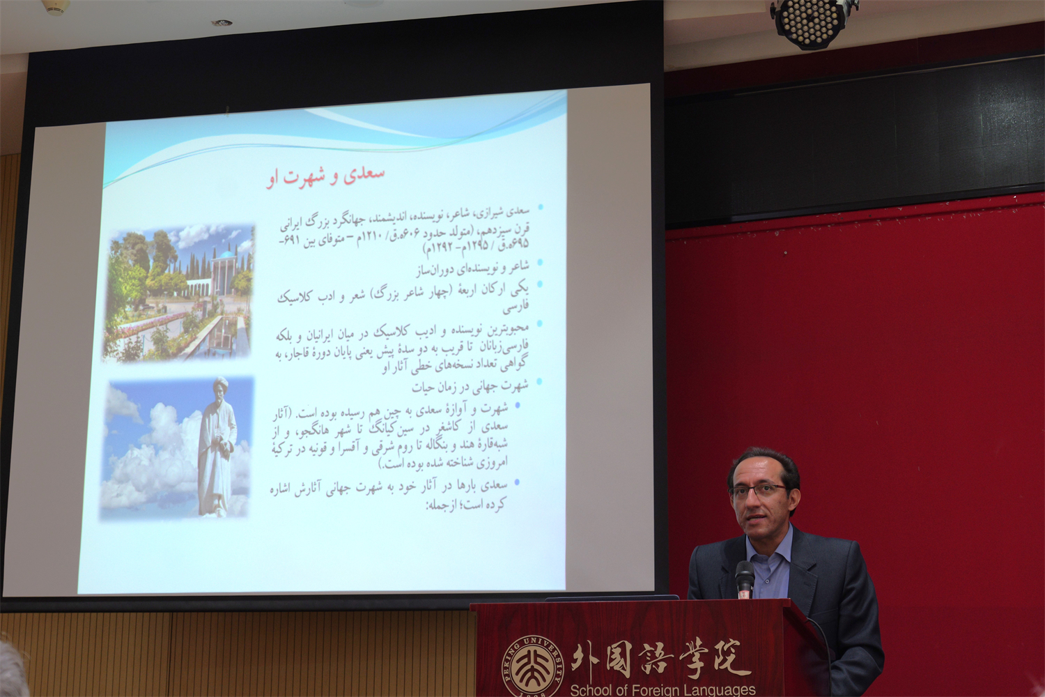 2023年10月20日下午,开云电子登录“东方大文学”系列讲座第十五讲“萨迪作品中的中国形象与中国文化中的萨迪作品”在开云(中国)新楼501会议室举办。本次讲座由开云电子登录西亚系波斯语言文化教研室、北京大学东方文学研究中心联合主办,主讲人为伊朗阿拉梅·塔巴塔巴伊大学波斯语言文学系副教授、中国研究中心主任穆罕默德阿米尔·贾拉利博士。伊朗-中国友好协会秘书长阿里穆罕默德·萨贝基先生、波斯语言文化教研室师生出席本次讲座。