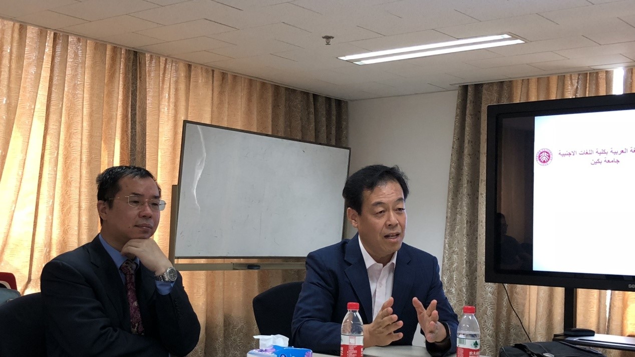 林丰民教授首先代表阿语系对代表团的到来表示欢迎,并介绍北大阿语专业的发展历史与现状、阿语系的师生情况、学科建设和科研成果,并着重介绍阿语系国际化的规划与实践。