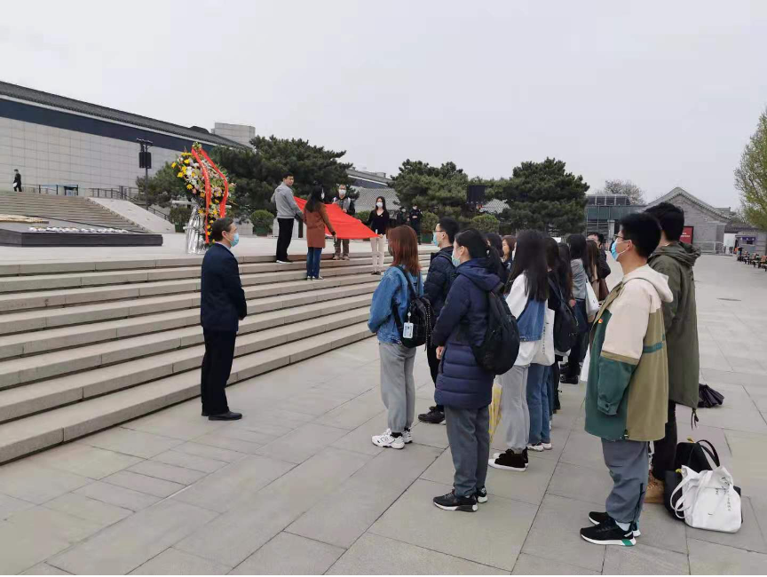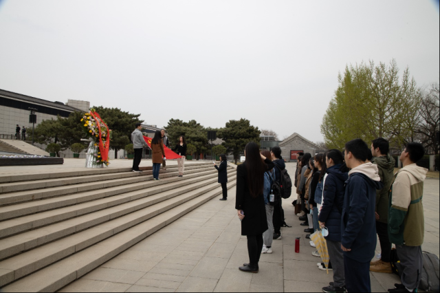 随后,在中国人民抗日战争纪念馆副馆长董立新和开云(中国)院友吕曦的带领下,师生来到抗战馆进行实地学习。清明时节寄哀思,在董馆长的指引下,师生在独立自由勋章雕塑前向先烈默哀致敬。董馆长表示,在建党一百年的关键历史节点,我们当代中华儿女应当“缅怀英烈志 奋进新征程 ”, 在缅怀先烈、寄托哀思的同时,更应当砥砺奋进,在新的一百年中创造新的辉煌。