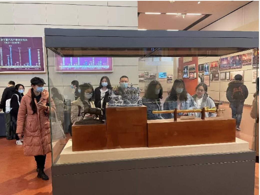 在参观完成后,同学们将自己的所思所学所想凝练成具体文字,进行了总结、讨论与交流。卫风阳通过文物的展出,场景的复原,观看了建党一百周年以来中国的历史沉浮。通过近距离接触这些当时历史事件中留存下来的文物,让我仿佛身临其境,更加体会到中国建设社会主义国家的坎坷和现在美好生活的来之不易,也为一百年来取得的巨大成就而感到骄傲。当今新时代的中国面临着更加严峻的挑战,我们即将成长为社会建设的中坚力量,也要努力为实现中华民族伟大复兴中国梦,把中国建设为富强民主文明和谐美丽的社会主义现代化强国而作出贡献。蒋博翔分享到参观国家博物馆《复兴之路》基本陈列,从历史的维度给予我深刻的启示。2012年,习近平总书记在参观《复兴之路》时提出了实现中华民族伟大复兴中国梦的重要论述。回顾1840年鸦片战争以来的历史,中国的近代史写满了列强侵侮的苦难,从历史的阴暗面中更知光明当下的来之不易。近代以来,无数仁人志士在救亡图存的道路上舍生忘死,在实现中华民族独立自由的道路上艰难探索,最终探索出一条经历史证明正确的新民主主义革命道路和社会主义建设道路。中国共产党领导,走中国特色社会主义道路,是历史的选择,是人民的选择。从生动的展品中可知历史之迫近,从历史的回顾中更知使命之重担。“实现中华民族伟大复兴,就是中华民族近代以来最伟大的梦想。”为了实现这个伟大梦想,青年人要接好时代的接力棒,以奋斗之姿投身于伟大事业的建设之中。因为课程等原因未能参与实地参访的同学,在国家博物馆官网进行线上参观《复兴之路》数字展览,并在看展后,纷纷提交了个人的心得感想。