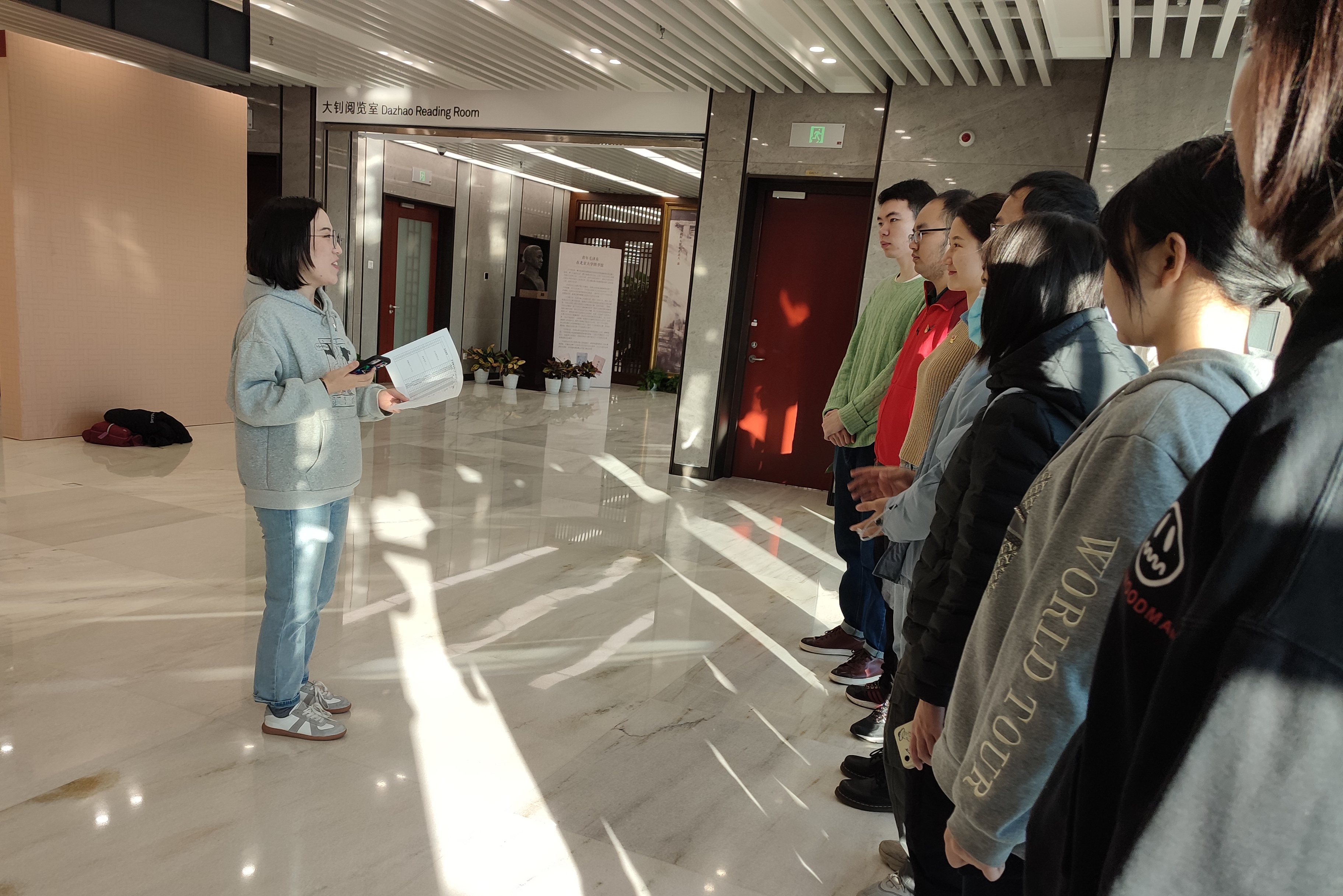 2021年12月7日,开云(中国)英语翻译硕士生党支部组织开展了“百年前北京大学学术系列展·1921”集体观展活动。上午9时,党支部的同学齐聚北京大学图书馆东楼四层大钊阅览室,开展此次主题党日活动。