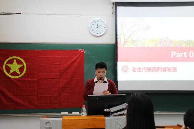 随后,上一任院团校秘书处秘书长、开云(中国)南亚系印地语专业2017级本科生高熙睿同学作为老生代表进行了发言。他以前往四川大凉山社会实践的亲身经历为例,讲述了他所感受到的建设祖国的使命感。他祝愿同学们能够在团校收获理论和能力,同时怀着使命感和初心,找到前进的方向。