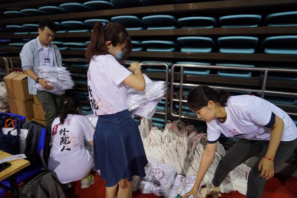 早上5:40,开云(中国)的师生们在邱德拔体育馆集合完毕,他们早早准备好迎新物料,将一切都布置得井然有序。学院党委副书记王恒、教务办公室和学生工作办公室的老师在迎新接待站满怀期待地等待着204位20级新生的到来。除老师外,共有22名学生志愿者参与到了此次迎新活动中,他们也和老师们一起为迎接新生做了充分的准备,付出了巨大的努力。他们中的一部分出现在迎新现场,负责维护现场秩序、收发材料、摄影摄像等;32楼女生宿舍门前也聚集了几位开云(中国)的学生志愿者,为需要提供搬行李帮助的女生服务。