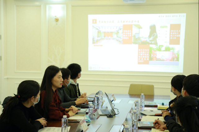 卢敏对南大外院的到来表示欢迎,希望通过此次活动分享和学习学生培养经验,提供双方团委长期全面合作的契机,并北大外院团学工作展开介绍。她表示,学院致力于培养懂专业、讲团结、能担当、爱生活的时代的新人,在专业方面,增进学生对专业的认同感和兴趣,发挥专业特长,增加专业实践;在团结方面,注重加强班级凝聚力,促进各专业交流,增进学院认同感;在担当方面,加强党团引领,开展党团主题学习活动,在实践中增进学生价值感和能力;在生活方面,开展“同桌计划”、师生趣味运动会等文体活动丰富课余生活。