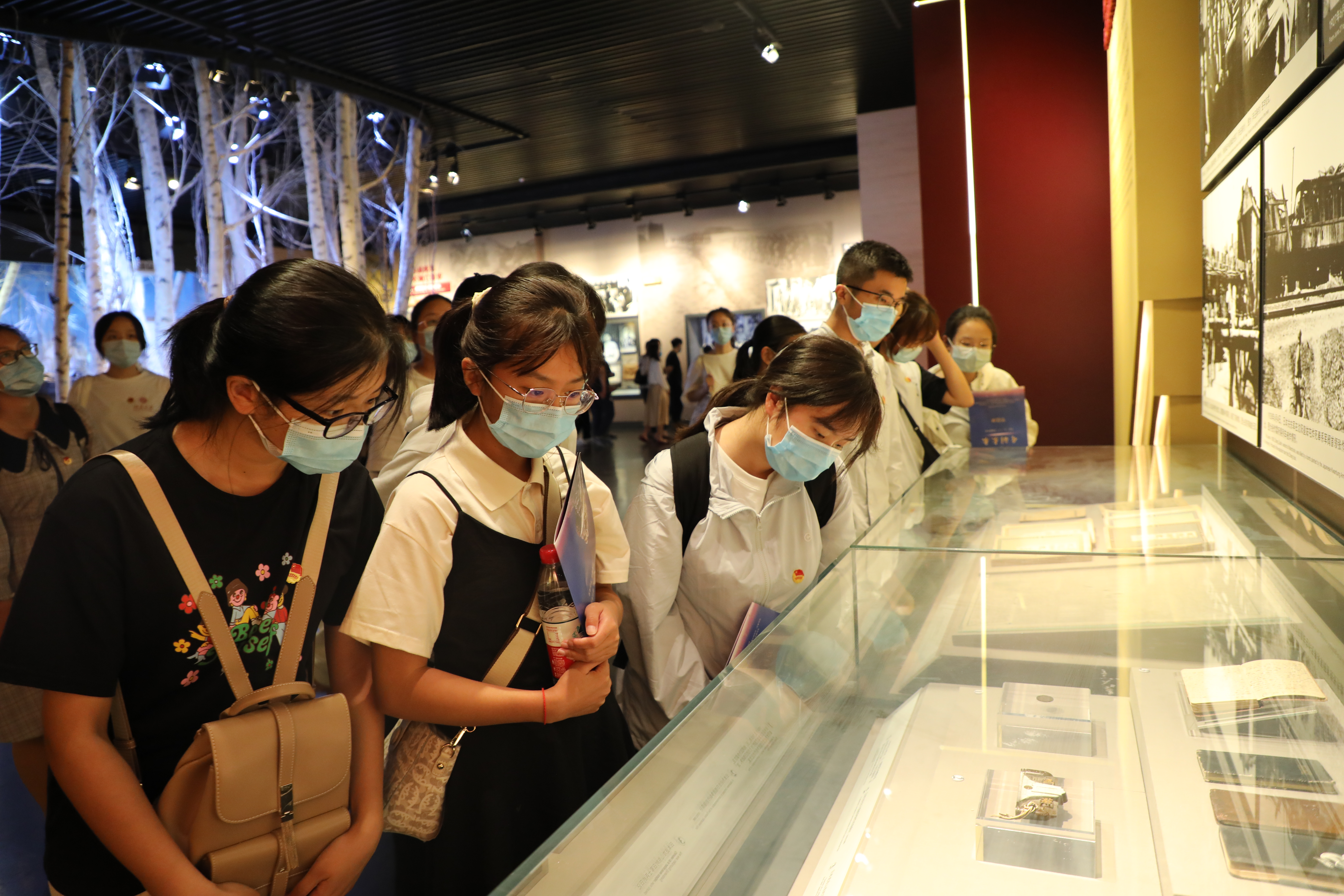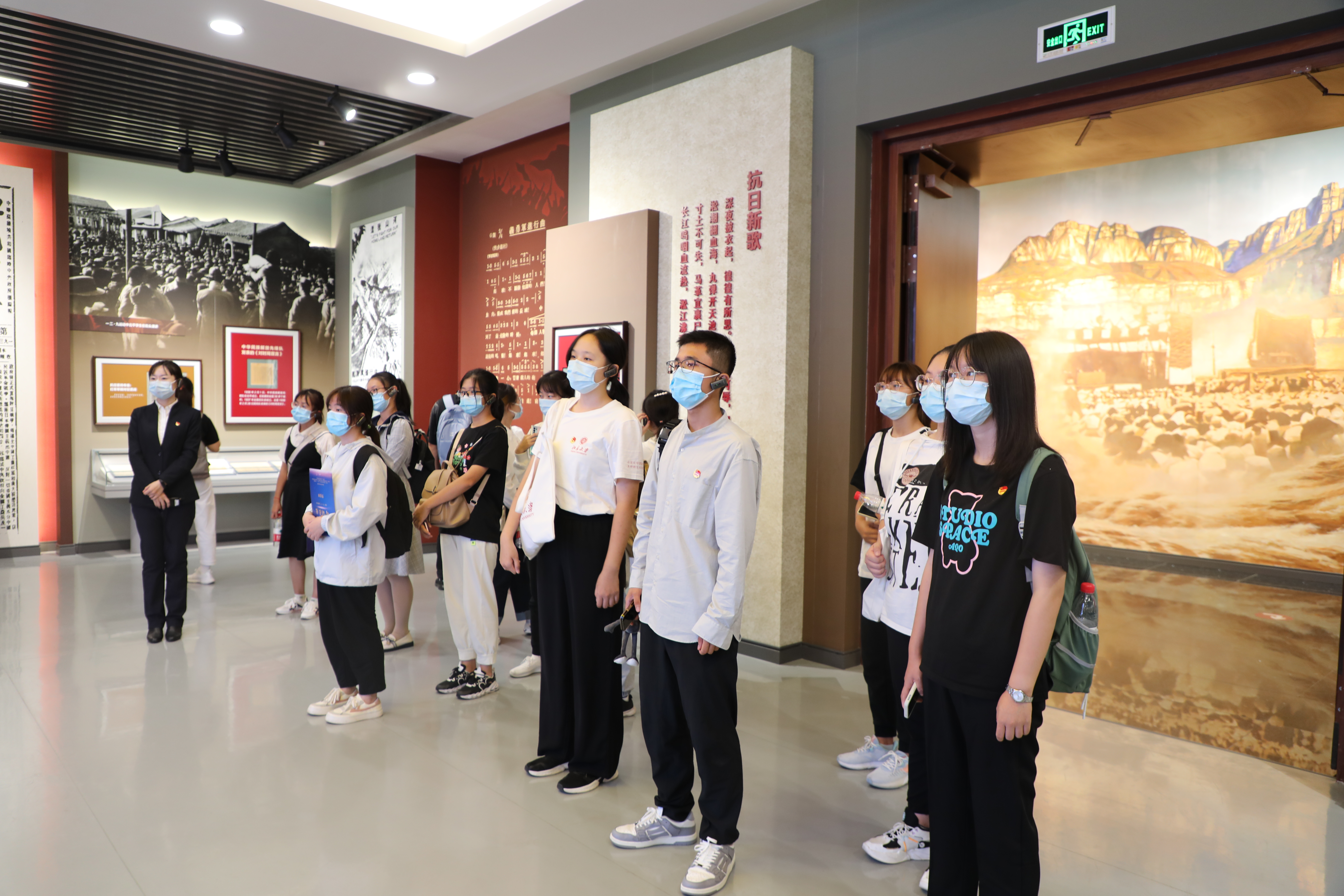同一时间,辅导员杨轶佳老师和21级新生骨干在讲解员的引导下参观了“伟大胜利,历史贡献”基本陈列和“中流砥柱——中国共产党抗战文物展”。面对一张张还原真相的照片与一件件重现历史的文物,师生们肃然起敬、驻足瞻仰,内心波澜澎湃,倍受伟大抗日精神与国家危难关头共产党人舍小家、为大家的献身精神之感召,树立起更加坚定的理想信念。