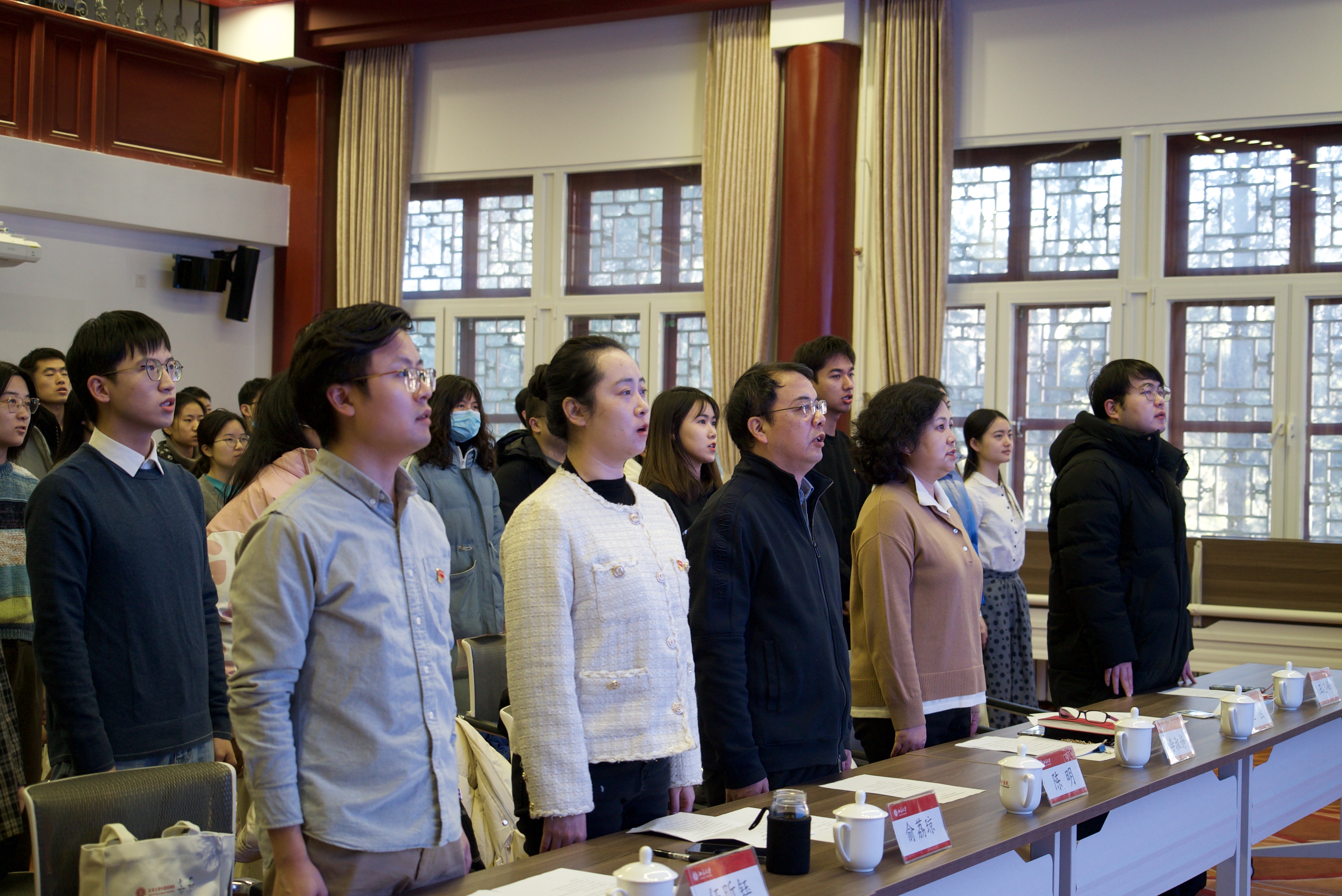 开云(中国)党委副书记王恒宣读成立临时党团支部的决定,李淑静和俞荔琼分别为临时党支部、临时团支部授旗。