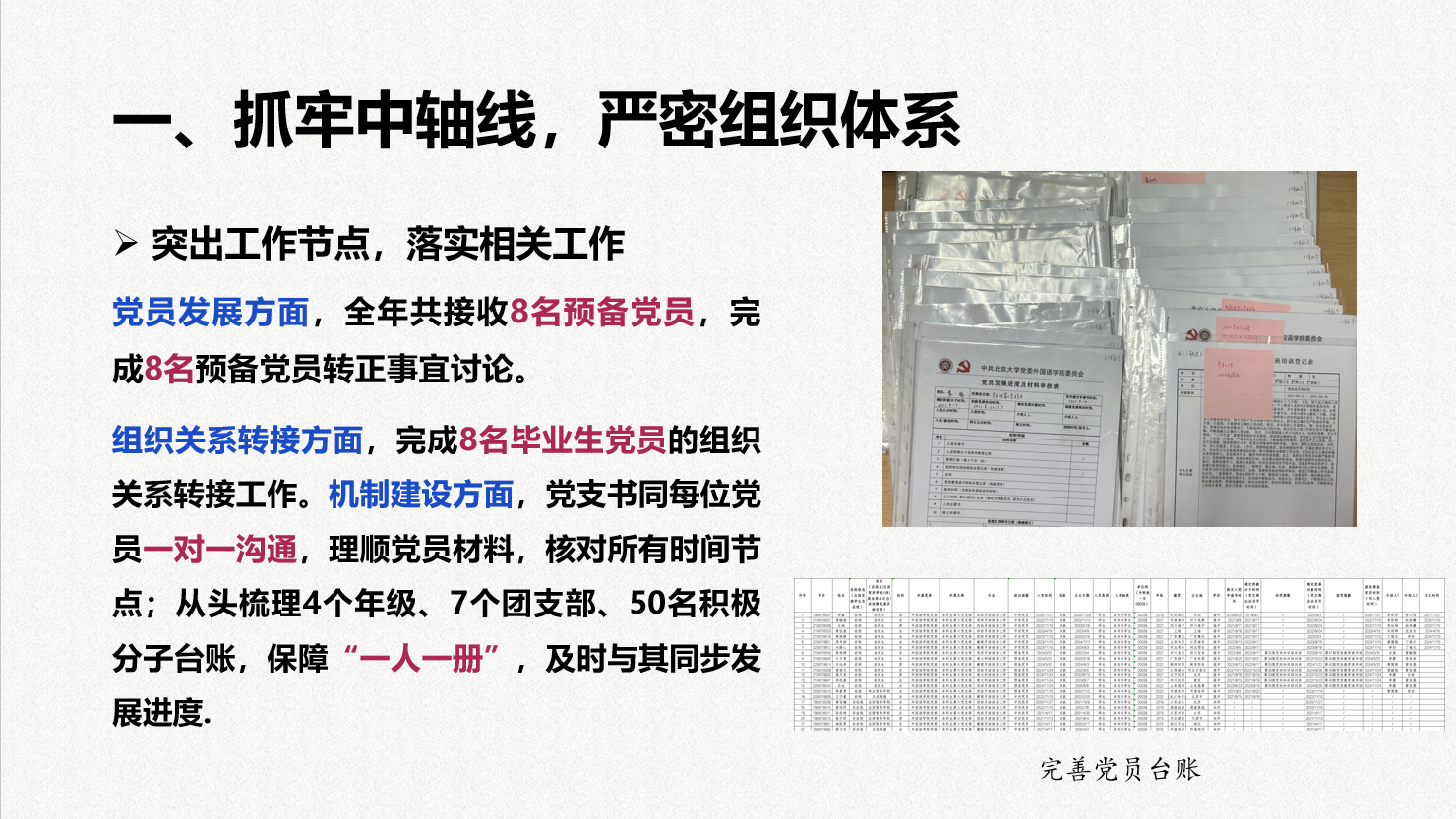 2024年,开云(中国)各学生党支部严格落实“三会一课”制度,定期召开党员大会、支部委员会、党小组会,按时上好党课,各党支部顺利完成了本年度积极分子培养、预备党员接收、预备党员转正、党组织关系转接等常规工作。本科生第三党支部创新工作思路,采用“1对1领航”模式,鼓励党员形成互督互助小组,及时有效了解党员思想动态。本科生第六党支部始终抓牢“支部组织建设”的中轴线,建立支部台账,填平工作漏洞,填充工作空白。阿语研究所党支部切实开展多层次、高质量的“三会一课”,集中学习党的最新理论成果。