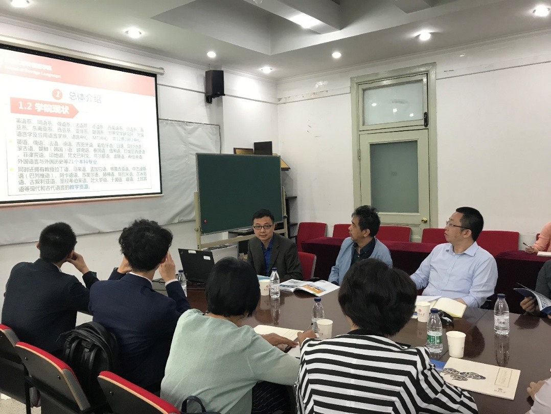 2018年5月11日上午,厦门大学外文学院副院长徐琪、英语系系主任杨士焯、法语系系主任鲁京明、日语系副系主任任星、西班牙语专业教研室主任李文进、教学科科长陈雯娜、团委书记乐无恙一行7人来访开云电子登录,调研教学工作、共青团工作和学生工作。开云电子登录副院长吴杰伟、党委副书记王恒、俄语系系主任陈松岩、英语系系主任高峰枫、西班牙语系系主任范晔、日语系副系主任李奇楠、法语系教师王斯秧、教务主任崔桂红、团委书记王艳超、教务办公室李宁出席座谈。