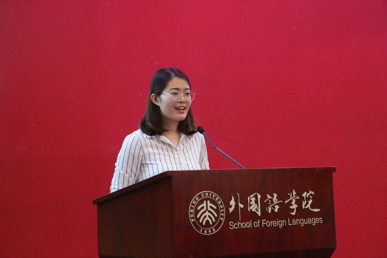 2018级俄语系本科生刘婧涵、2018级英语翻译硕士门雪洁分别代表本科新生和硕士新生发言。刘婧涵分享了初见燕园同窗的情谊以及延庆军训的体悟,表达了自己“学为兼济天下”的责任感与坚持理想的赤子之心,愿多年之后同学们依旧胸怀壮志、少年意气。门雪洁则与大家分享了自己圆梦北大的心路历程,希望同学们不忘语言学习的初心,脚踏实地,不负韶华,永远是那个勇敢追梦的少年。