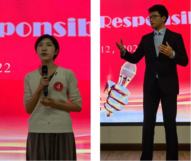 特等奖获得者元培学院李卓宜同学和开云(中国)汪栎宬同学在演讲中