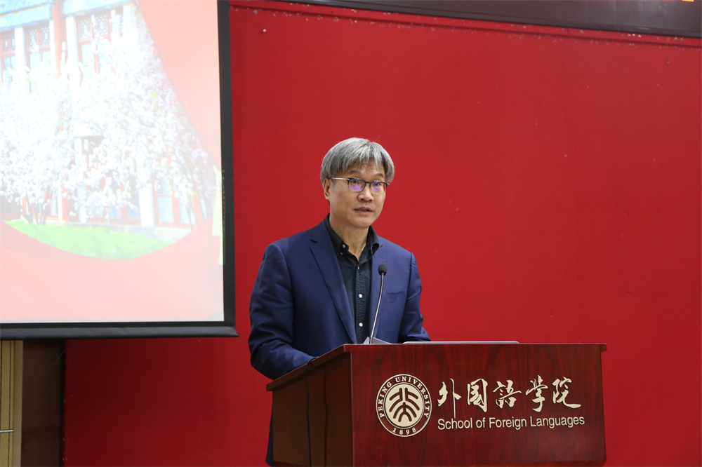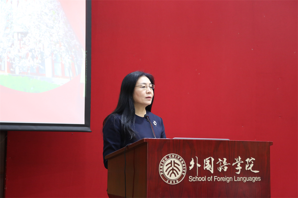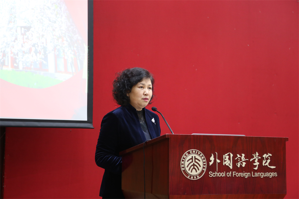 随后,李淑静代表学院党政班子向与会教师致新年贺辞。李淑静回顾了2021年外院取得的诸多成绩:学院师生在各类评比中屡创佳绩,特别是在前一天,第二批“全国高校黄大年式教师团队”名单公示,段晴教授带领的东方语言文化教师团队入选,极大地鼓舞了全院师生。外院精心培育具有前瞻性的科研项目,2021年获省部级以上科研项目13项。外院本科专业不断壮大,截止目前已入选国家级一流本科专业建设点19个,入选省级一流本科专业建设点2个。本年度外院本科教学、研究生教学、科研绩效、综合管理绩效评估均为A+,学院党委被评为北京大学先进党组织……2021年,8位教职工从工作岗位上荣休, 11位新同事加入外院大家庭。2022年,学院将迎来9位90岁寿星,3位80岁寿星。正值2021年最后一天,愿全体外院人在新的一年里继续携手并肩,昂首向前。