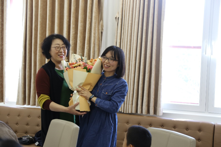 张冬梅老师首先肯定了两位老师的辛勤工作。张老师提到,两位老师在外院的工作中一直勤勤恳恳,任劳任怨,不计个人得失,从自己的岗位职责出发,在学院制度建立、工作流程优化、系所服务等方面做出了突出的贡献。张老师鼓励大家向两位老师学习这种职业精神,立足自身,继续为外院的发展添砖加瓦。之后,张老师代表学院向两位老师送上了鲜花及感谢信,感谢她们多年来对外院的付出,并衷心祝愿她们收获更加美好的未来。